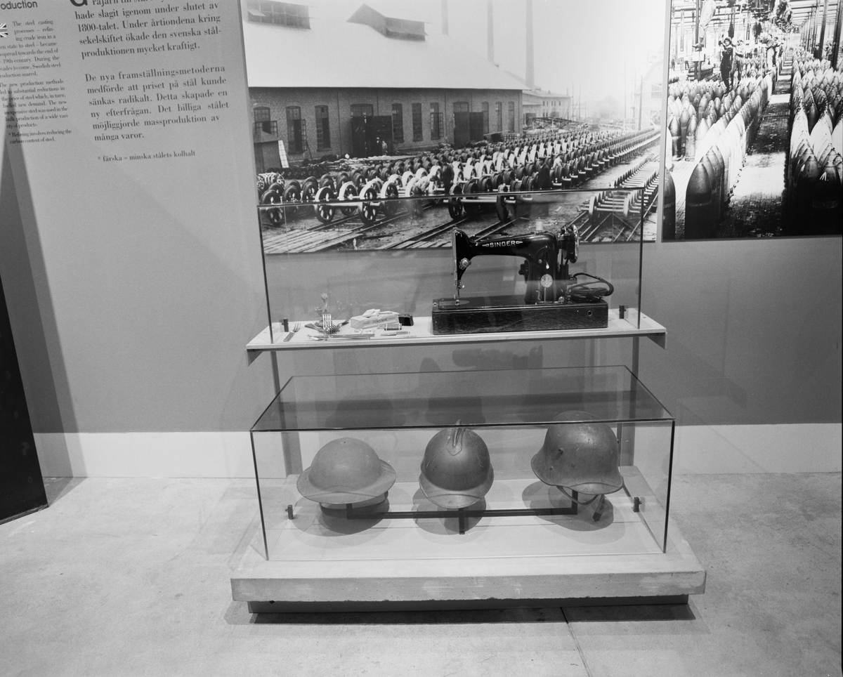 Monter med hjälmar, utställd i Ferrum.