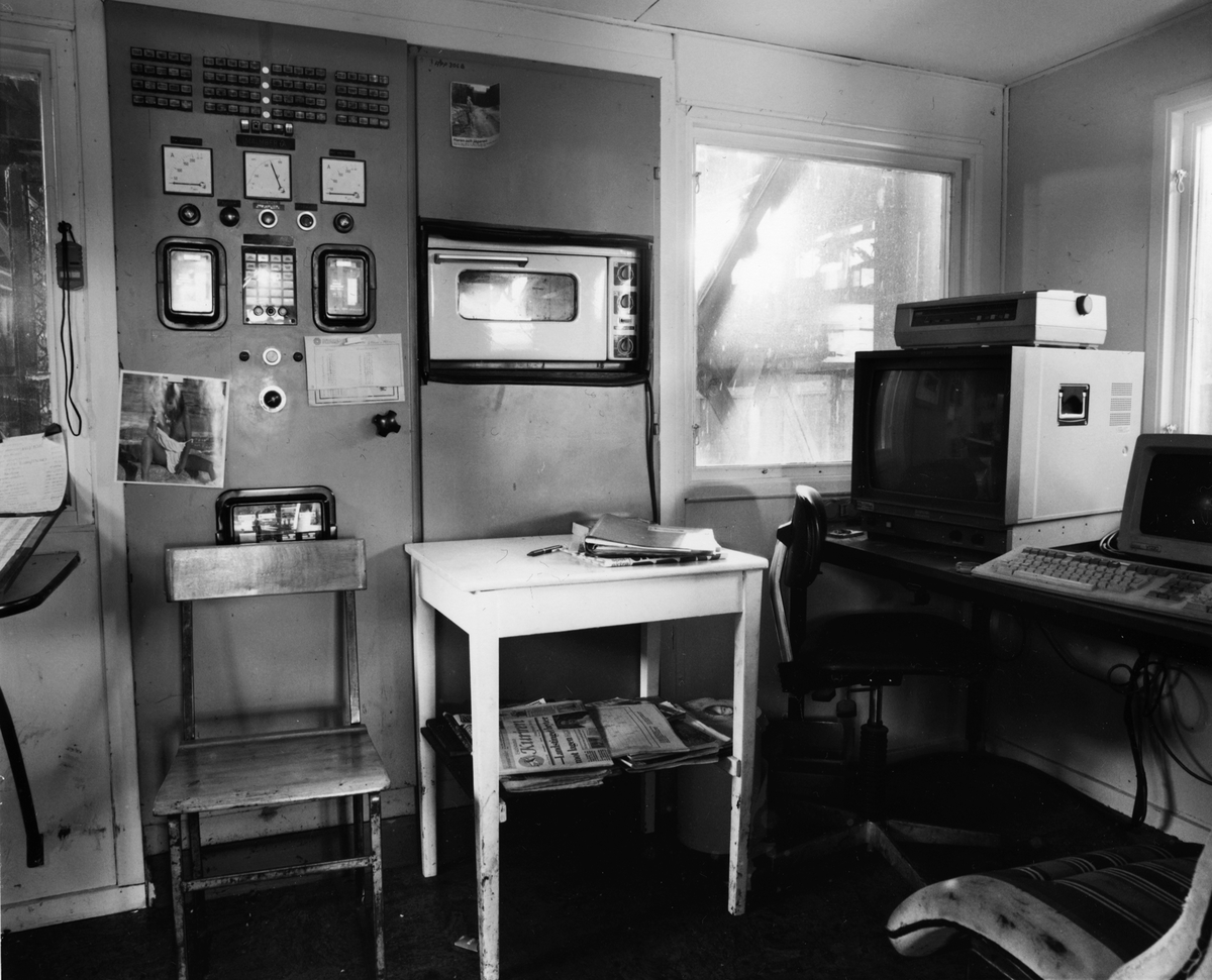 Kalklinbanan Forsby - Köping. Station Malmberga. Automatikskåp med mekaniska reläer från 1967. Då auto matiserades 2 mellanstationer. Dator för övervakning av mellanstationerna>> från 1987.