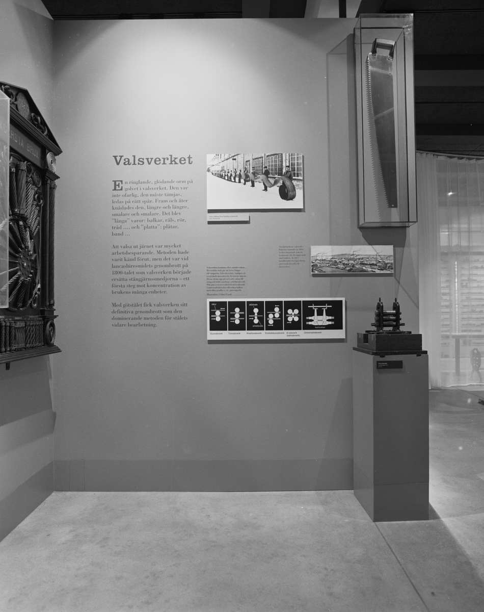 Dokumentation av Ferrum. Översiktsbild av valsverket med modell av valsverk och såg.
