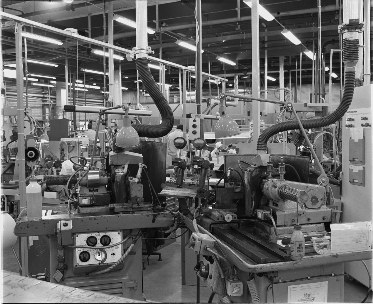 SLIPNING AV FRÄSSKÄR Bilden visar 2 st Safag-maskiner där operatören spänner fast och slipar ett tempo ( 3 faser i höger utförande ) i en maskin varefter skäret flyttes över till den andra maskinen för motsvarande slipning av 3 st faser i vänsterutförande. >>