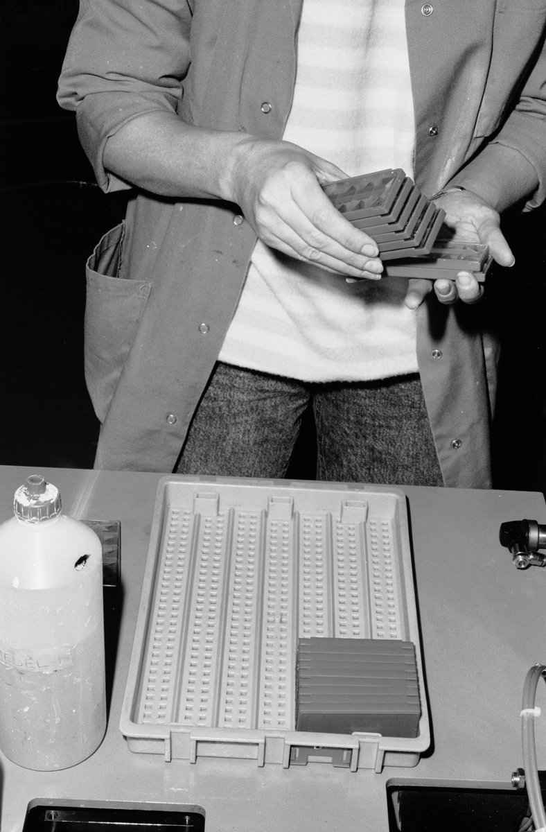 BLÄCKSTRÅLEMÄRKNING. Märkta skär i ask kontrolleras med avseende på märkning och antal. >>