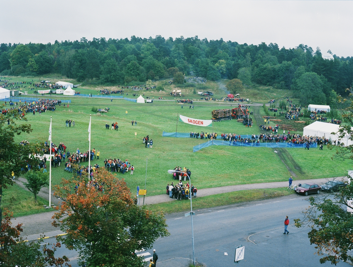 Titel: Skogens dagar. Utsikt över Gärdet från Tekniska museets tak.