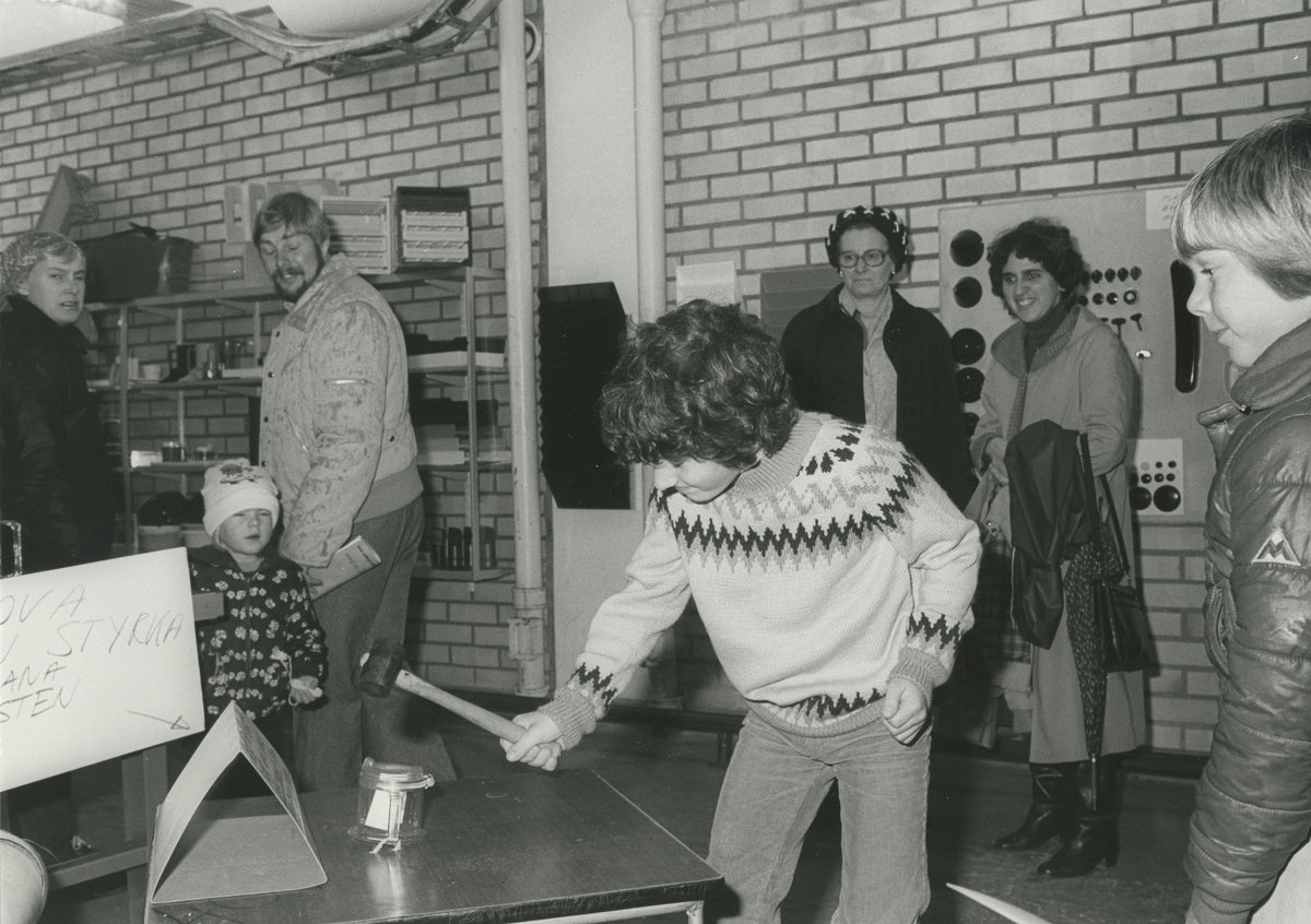 Personer: Pojke med hammare: Samuele Perini. Dam med jacka på armen, hans mamma Emiliana och bredvid Ines Marian. Man med skägg: Bengt-Åke Larsson, med fru och barn t.v.