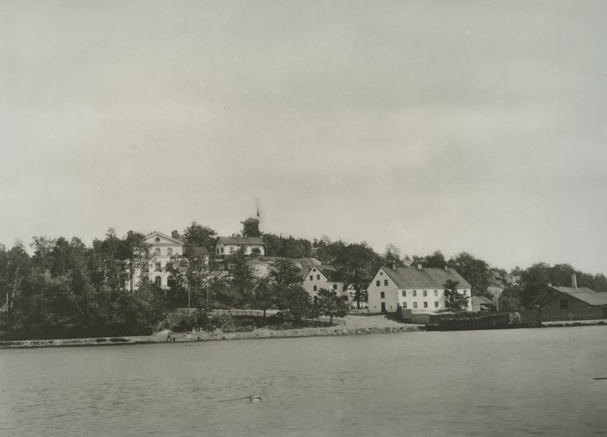 Värdshuset, mjölnarbostaden Stjärnan, Kvarnen och Stenhusen, vy från Farstaviken.