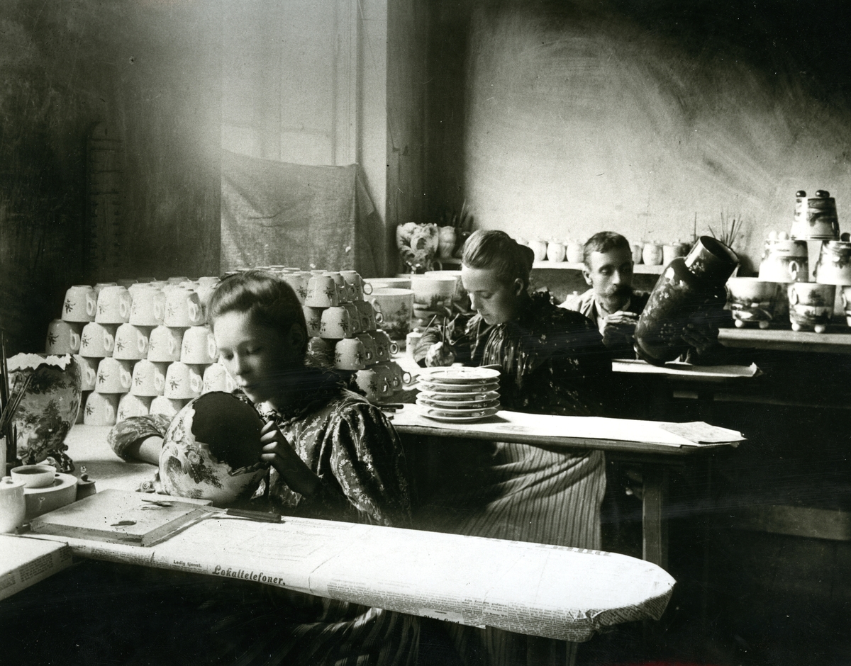 Dekorering av porslin i målarsalen.