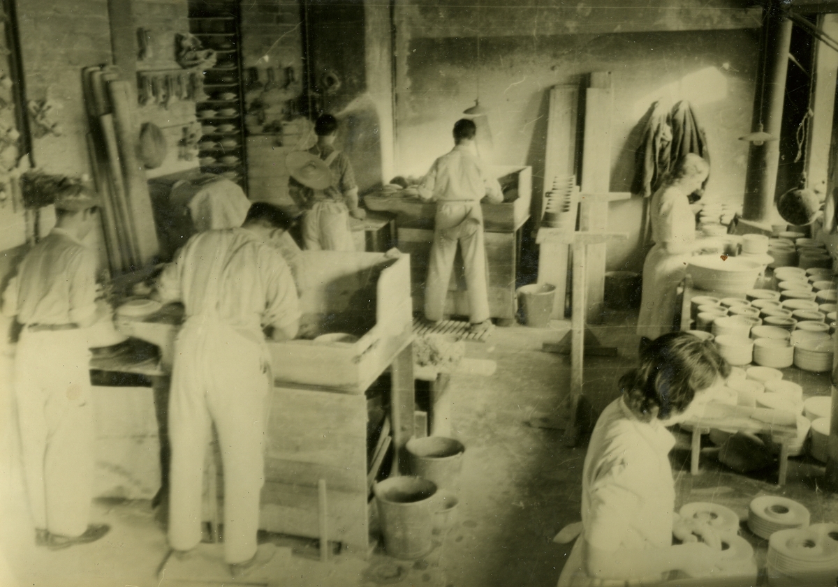 Tallriksformning i Gustavsbergs porslinsfabrik.