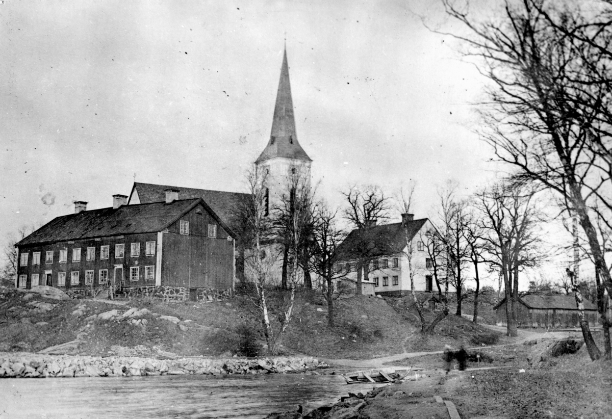 Från vänster Statbyggningen, Gustavsbergs kyrka och Ekensberg.