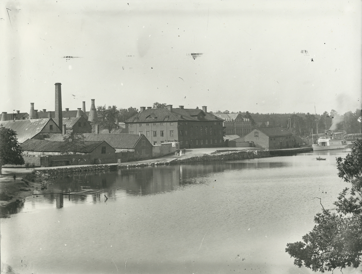 Utsikt mot Gustavsbergs hamn med Gula byggningen.