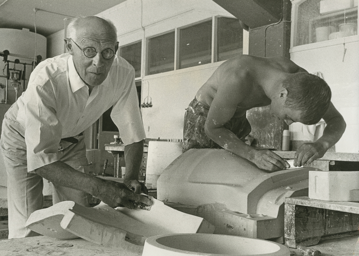 Tillverkning av gipsformar i gipsgjuteriet på Sanitetsporslinsfabriken.