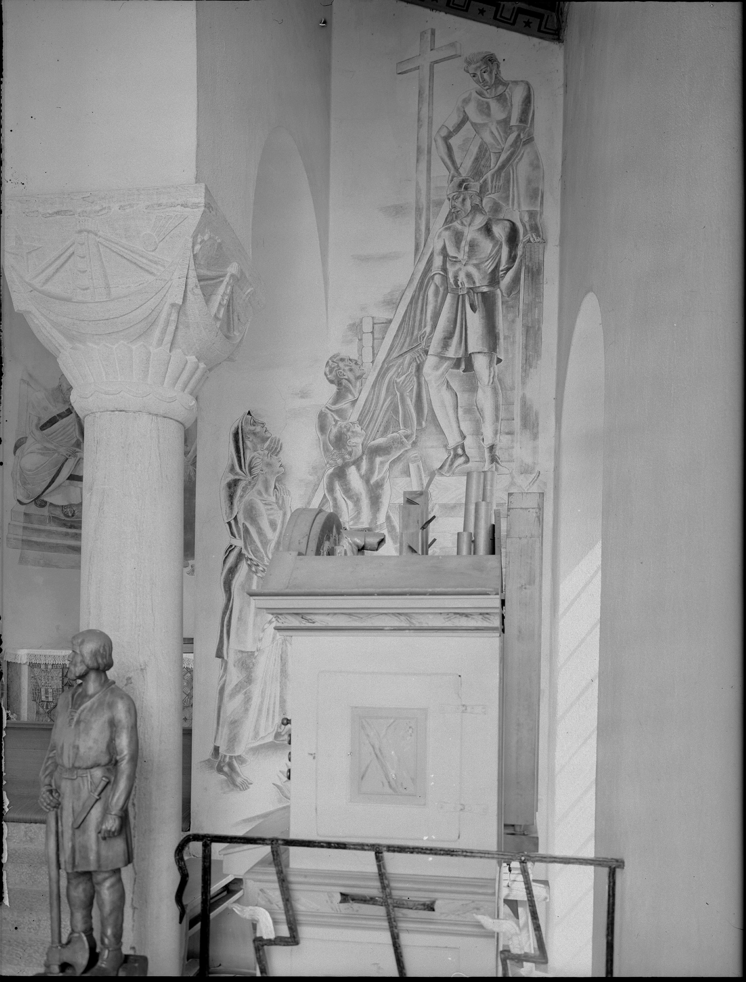Väggparti med kalkmålningar av Gunnar Torhamn. Foto omkring 1930.