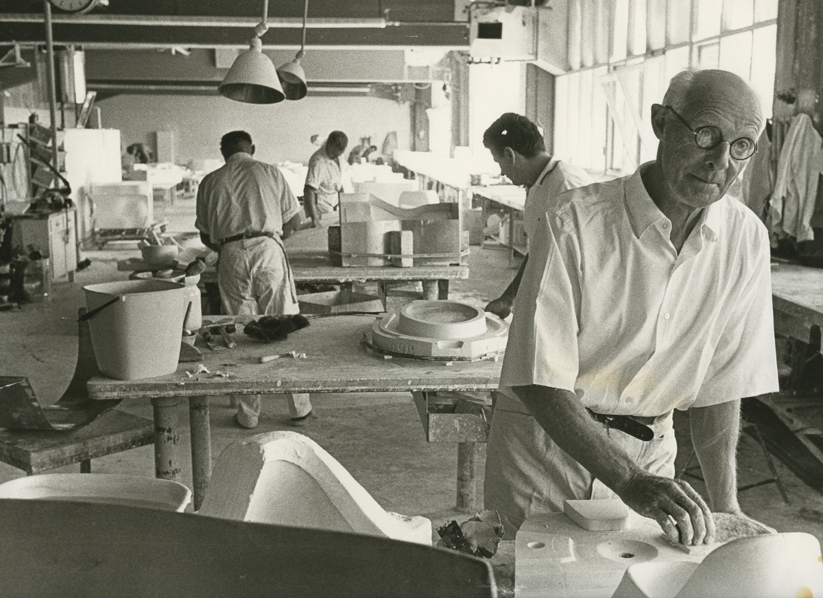 Tillverkning av gipsformar i gipsgjuteriet, Sanitetsporslinsfabriken.