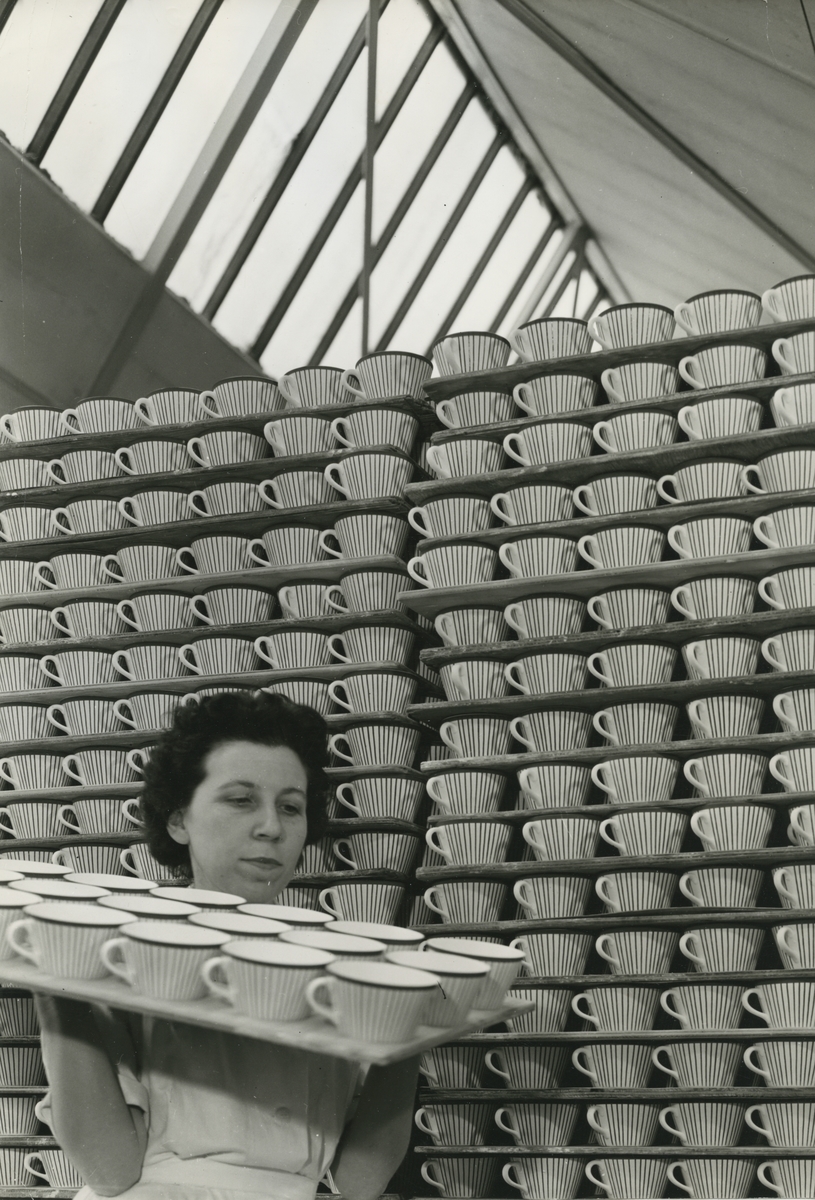 Bild från fabriken med staplar av koppar av märket Spisa Ribb.