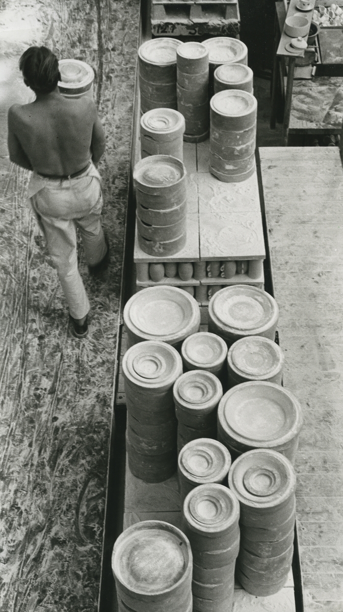 Interiör. Hushållsfabriken. Gods i väntan på bränning..