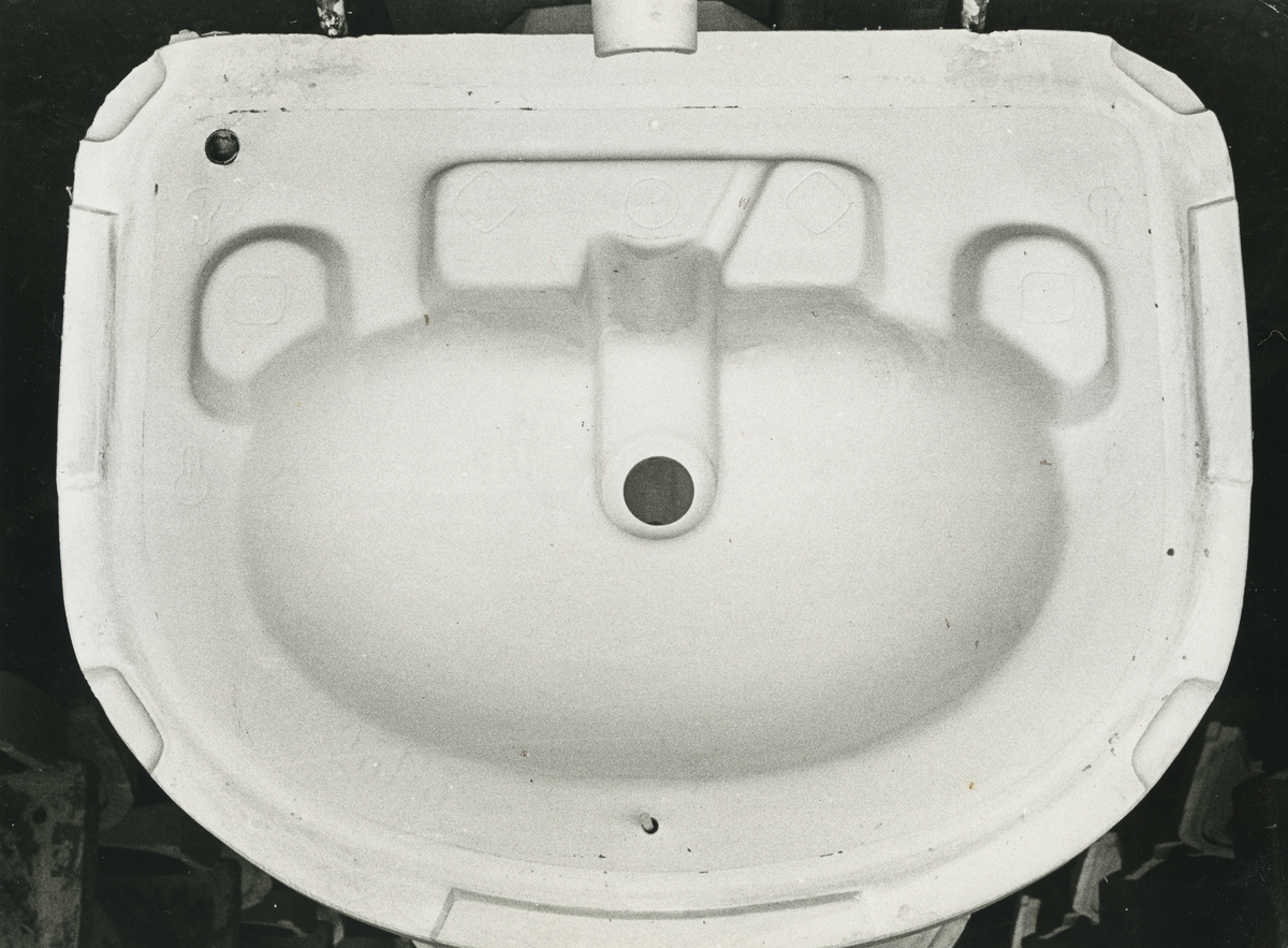 Detaljbild, Sanitetsporslinsfabriken. Underdel av gjutform för handfat.<br>