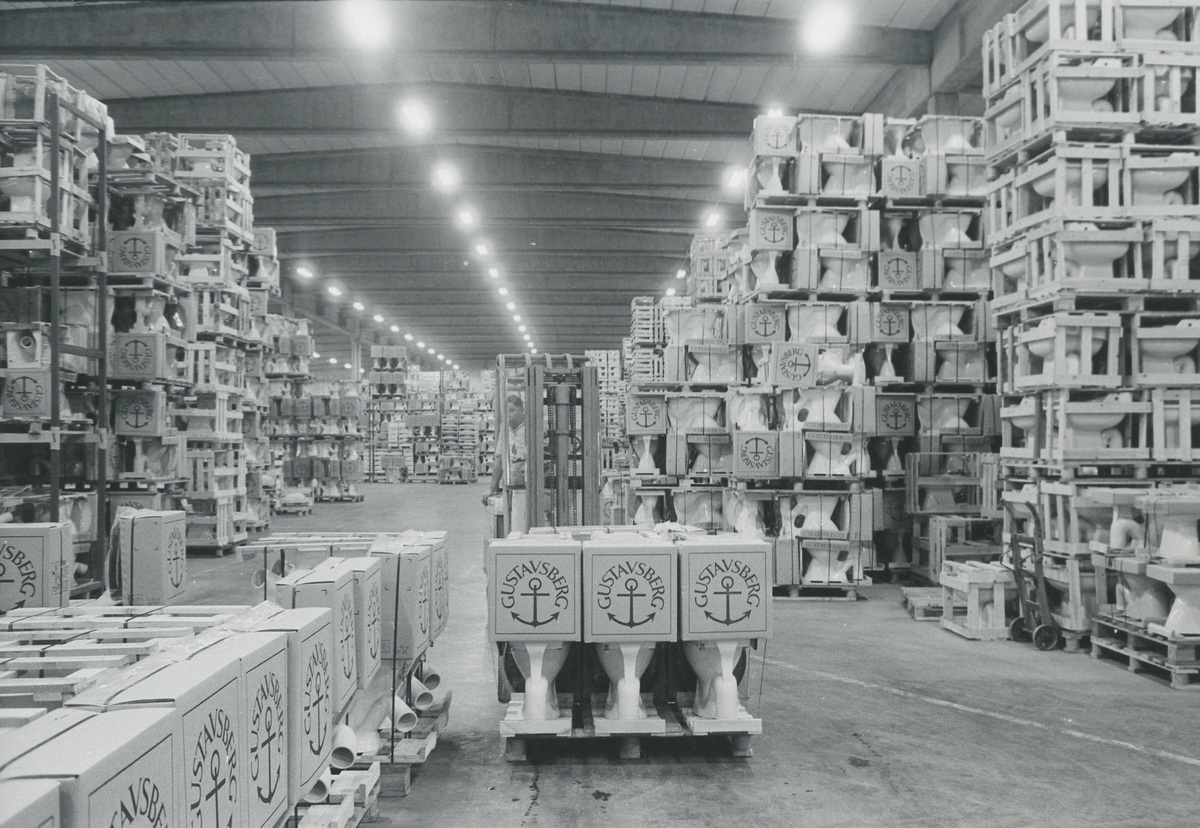 Interiör, Sanitetsporslinsfabriken. Packat och lagrat sanitetsgods.<br>