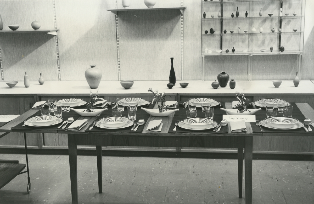 Interiör. Utställning av Gustavsbergsporslin. Konsums varuhus Forum i Uppsala.