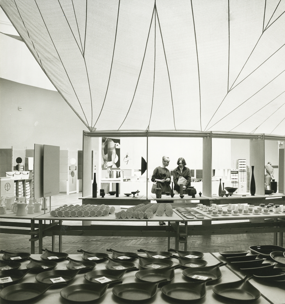 Interiör, Wien. Del av utställningen Kunstlerisches Schaffen und Serienproduktion 1960 på Österrikes konstindustrimuseum.<br>Produkter från Gustavsbergs Fabriker.<br>