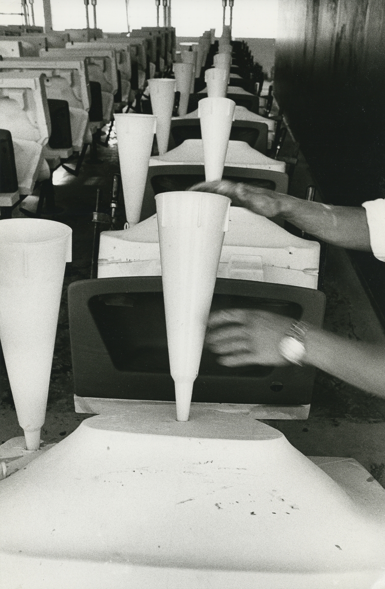 Interiör, Sanitetsporslinsfabriken. Förberedelse för gjutning av tvättfat.