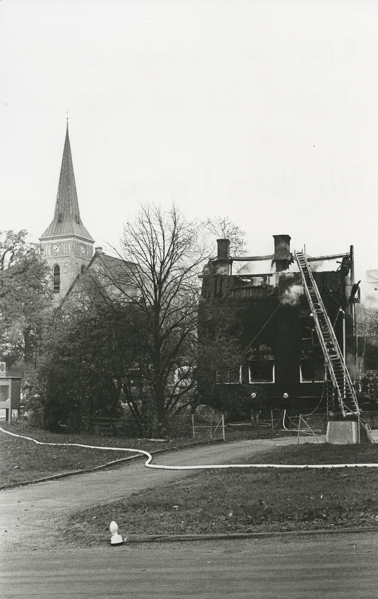 Exteriör. Bleket, Wärmdögatan. Eftersläckningsarbete efter brand,