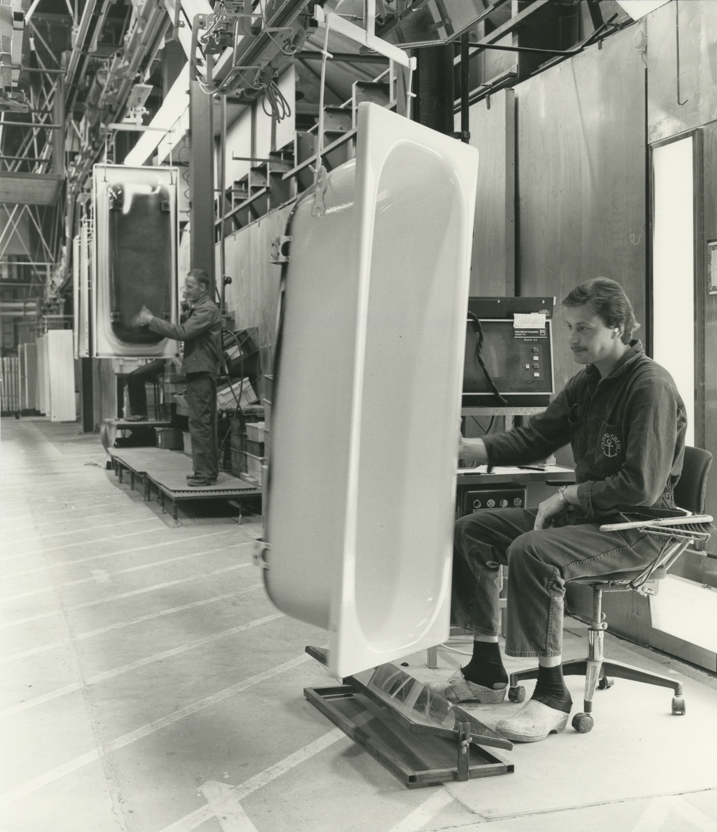 Interiör. Badkarsfabriken, avsyning av badkar.