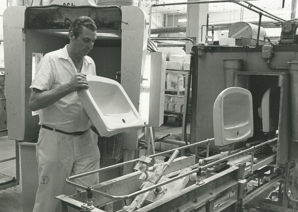 Interiör, Sanitetsporslinsfabriken. Avsyning före glasering.