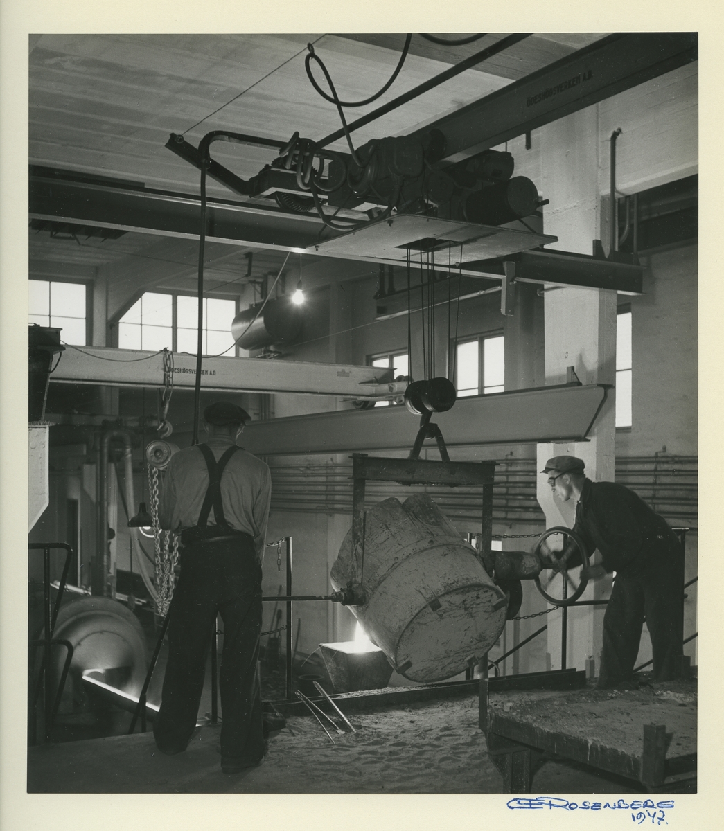Interiörbld.Tillverkning av centrifugalrör. Centrifugalrörsfabriken i Oxelösund, 1947.