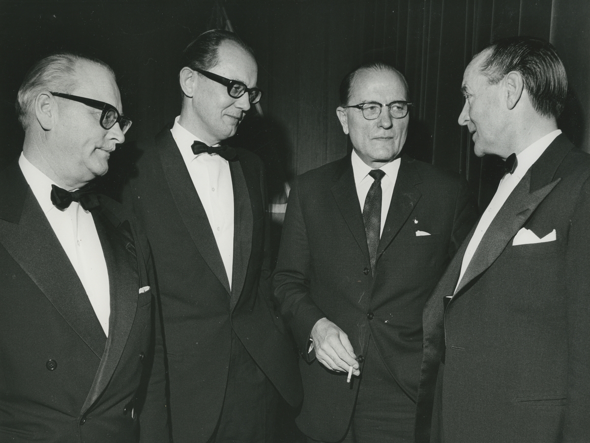 Personer: Fr. vänster: okänd, Hans Asplund, Arne S. Lundberg och Hjalmar Olson