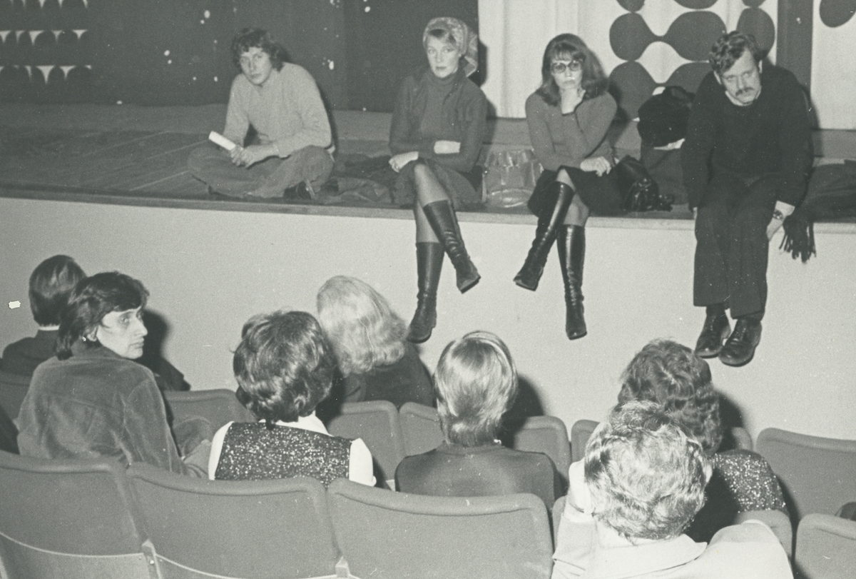 Interiörbild. Scenframträdande och publik på Gustavsbergsteatern, Gustavsbergs nya centrum.
