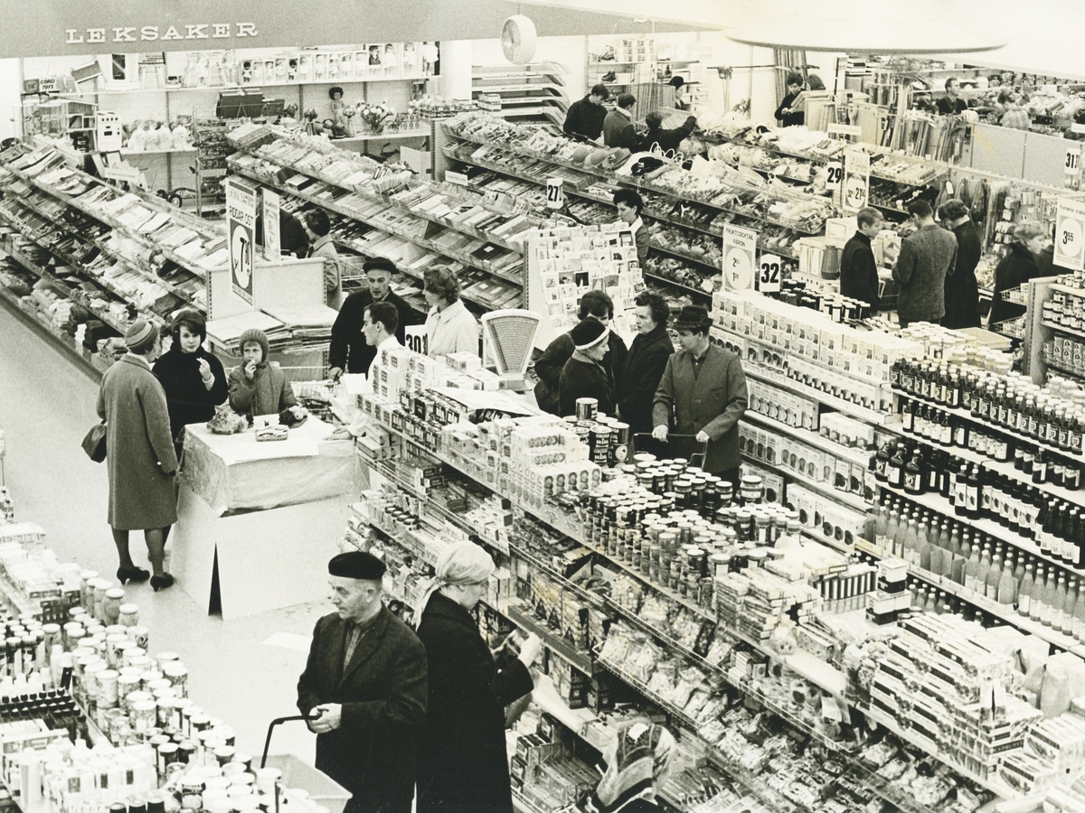 Interiörbild. Domus varuhus, matvaruavdelningen, Gustavsbergs centrum.