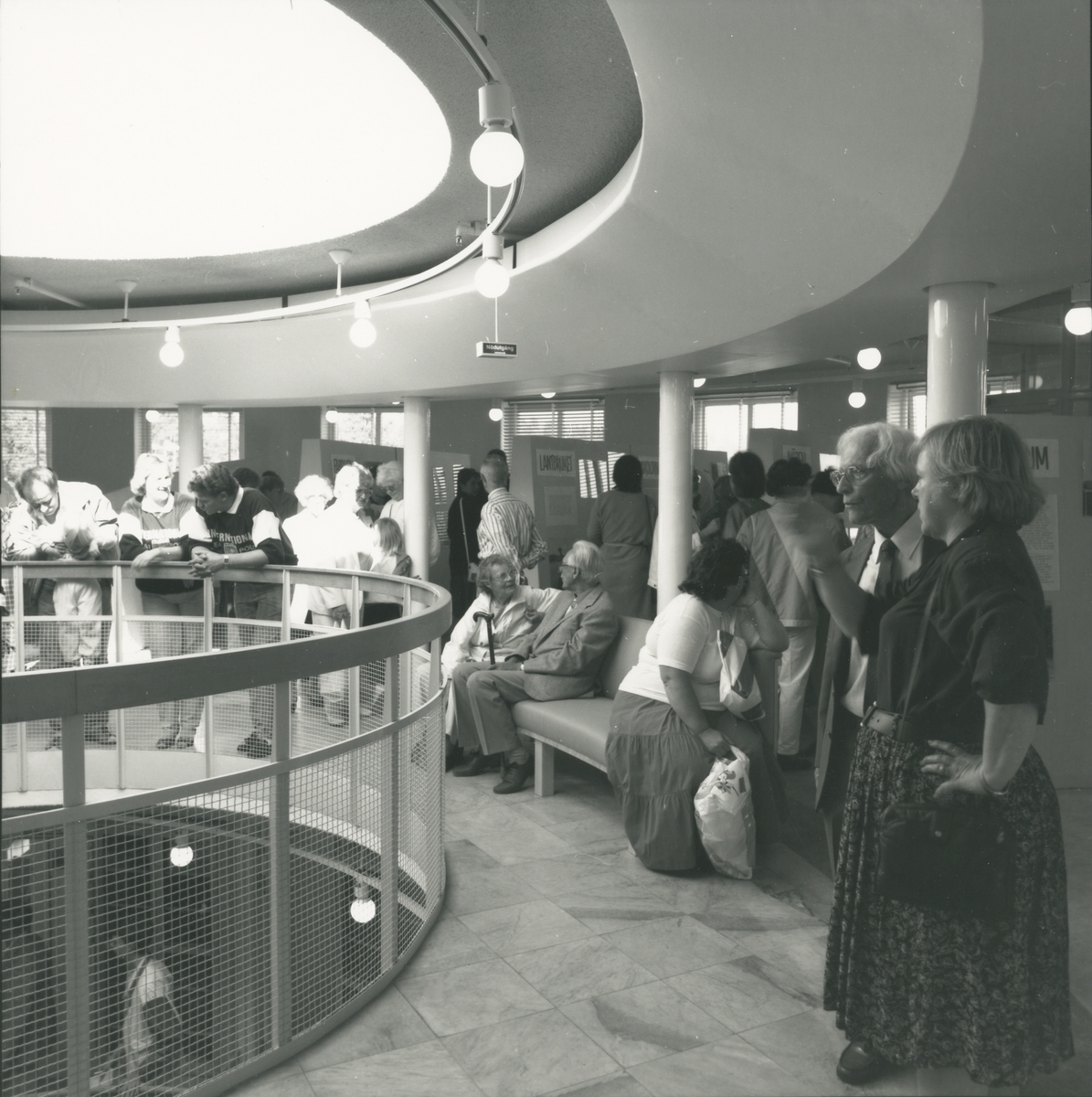 Interiörbild. Invigning av Runda huset som kulturhus och bibliotek 1988.