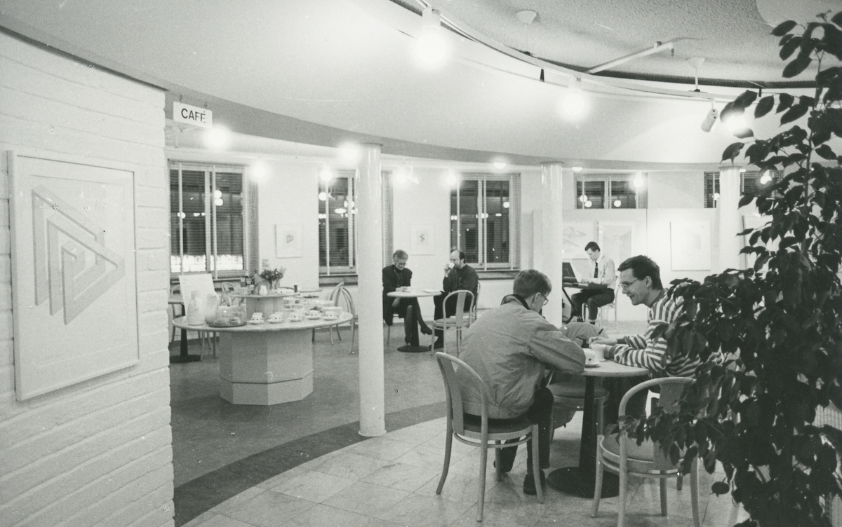 Interiörbild. Runda huset, kulturhus, bibliotek och café.
