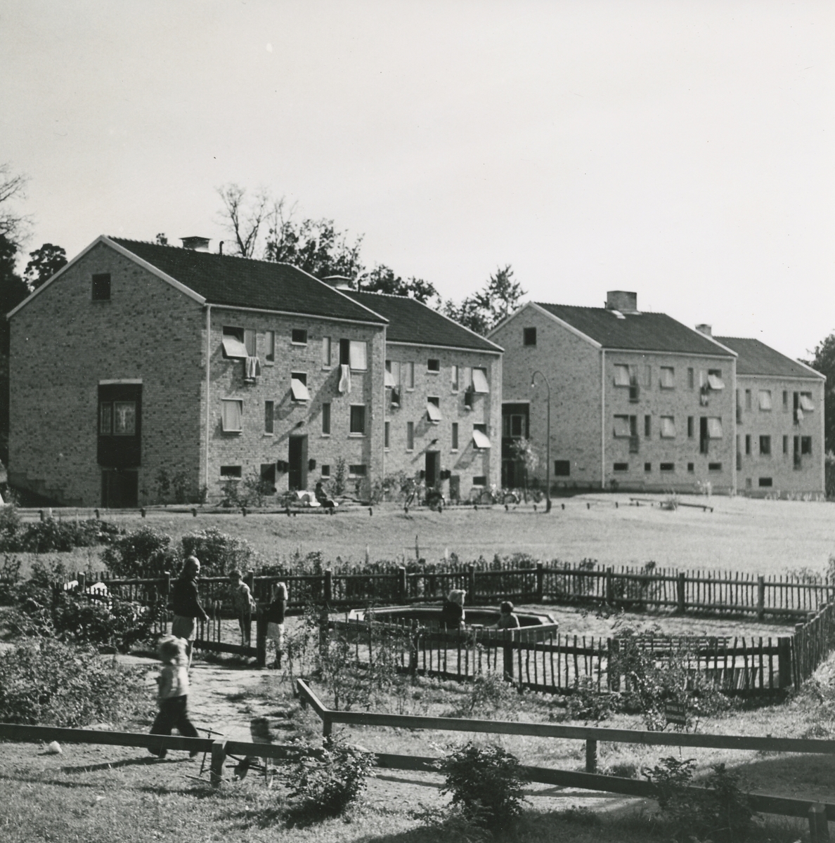 Exteriör. Mariaplan. Tvåvåningshus och lekpark.