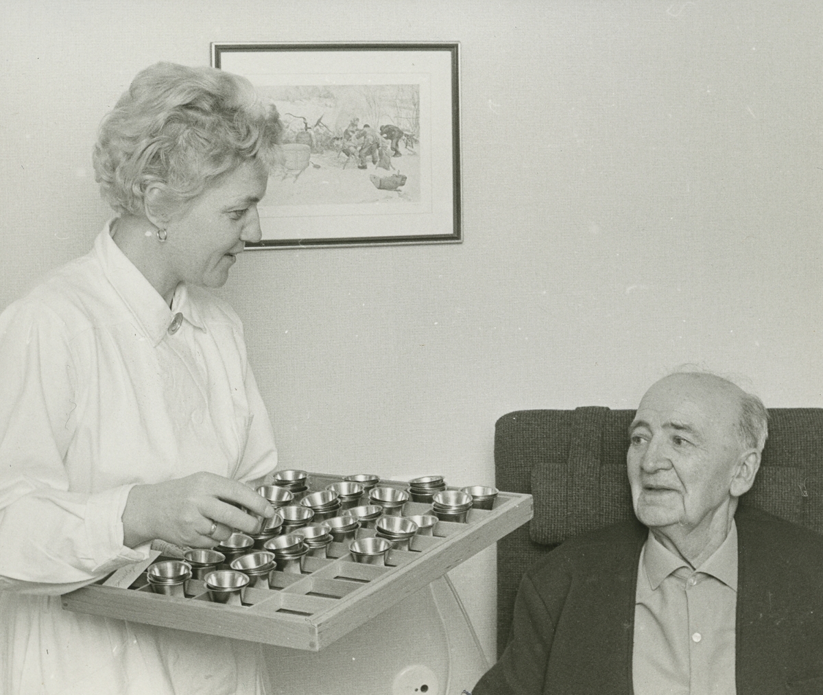 Titel: Interör. Gustavsgården. Utdelning av medicin. Personer: okända