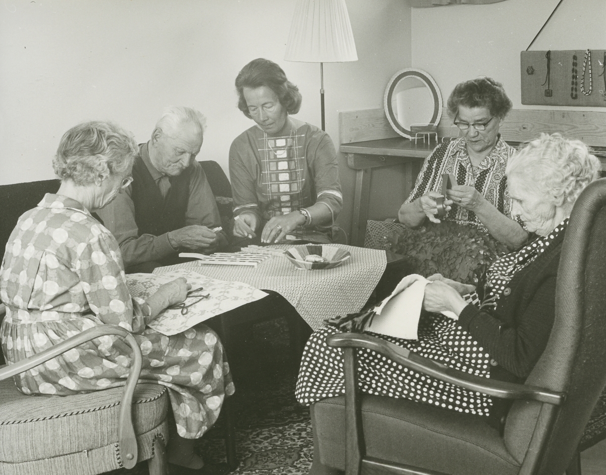 Interör. Gustavsgården. Kurser i olika slags handarbeten för de äldre, 1965.