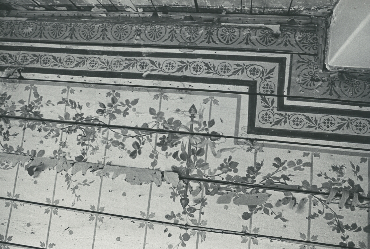 Interiör. Bergsgatan, Gustavsberg. Detalj av innertak med målning utförd av Anders Blomkvist, porslinsmålare. Målningarna upptäcktes vid husets totalrenovering 1977.