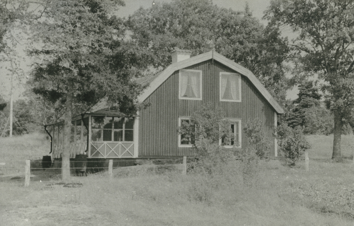 Exteriörbild. Tjustviks mangårdsbyggnad. Sannolikt byggd ca 1830. Dess fyrdelade planlösning avspeglas i den breda huskroppen. Denna typ av lösning hade sedan 1700-talet använts för tjänstefolksflyglar på herrgårdarna.