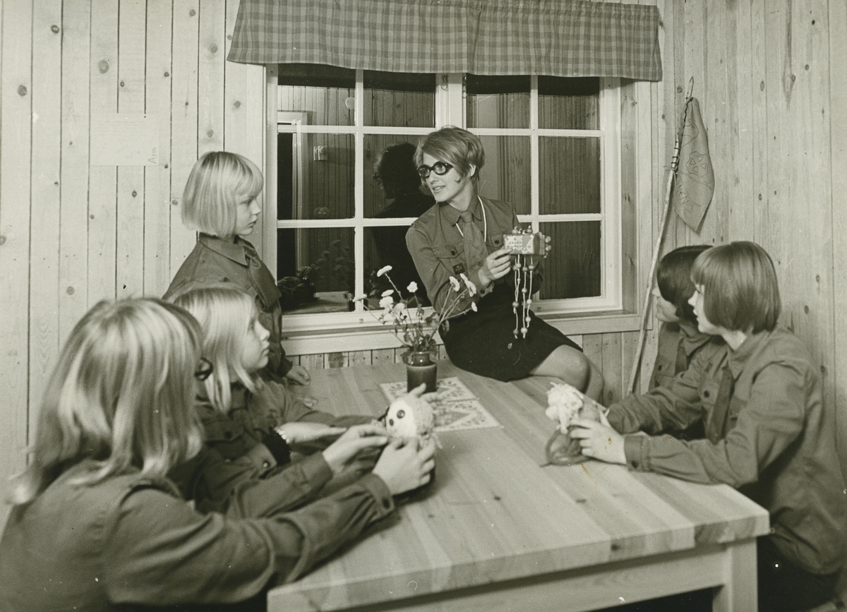 Interiörbild. Ungdomsverksamhet med pysselkväll på missionsförsamlingens SMU-gård, Skärgårdsvägen 14.<br>