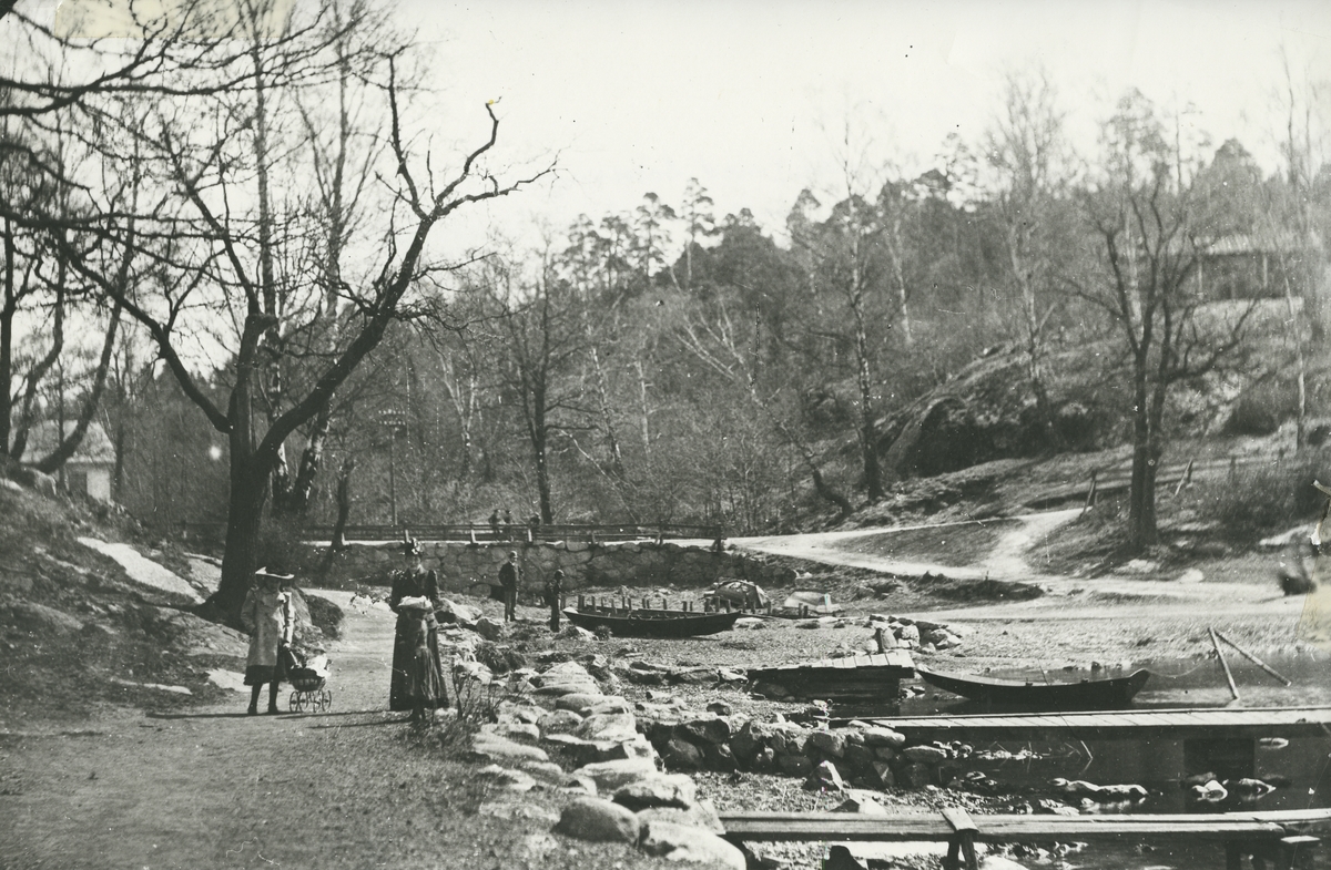 Personer: Doktorinnan Lindhé (med barnvagnen). och okända