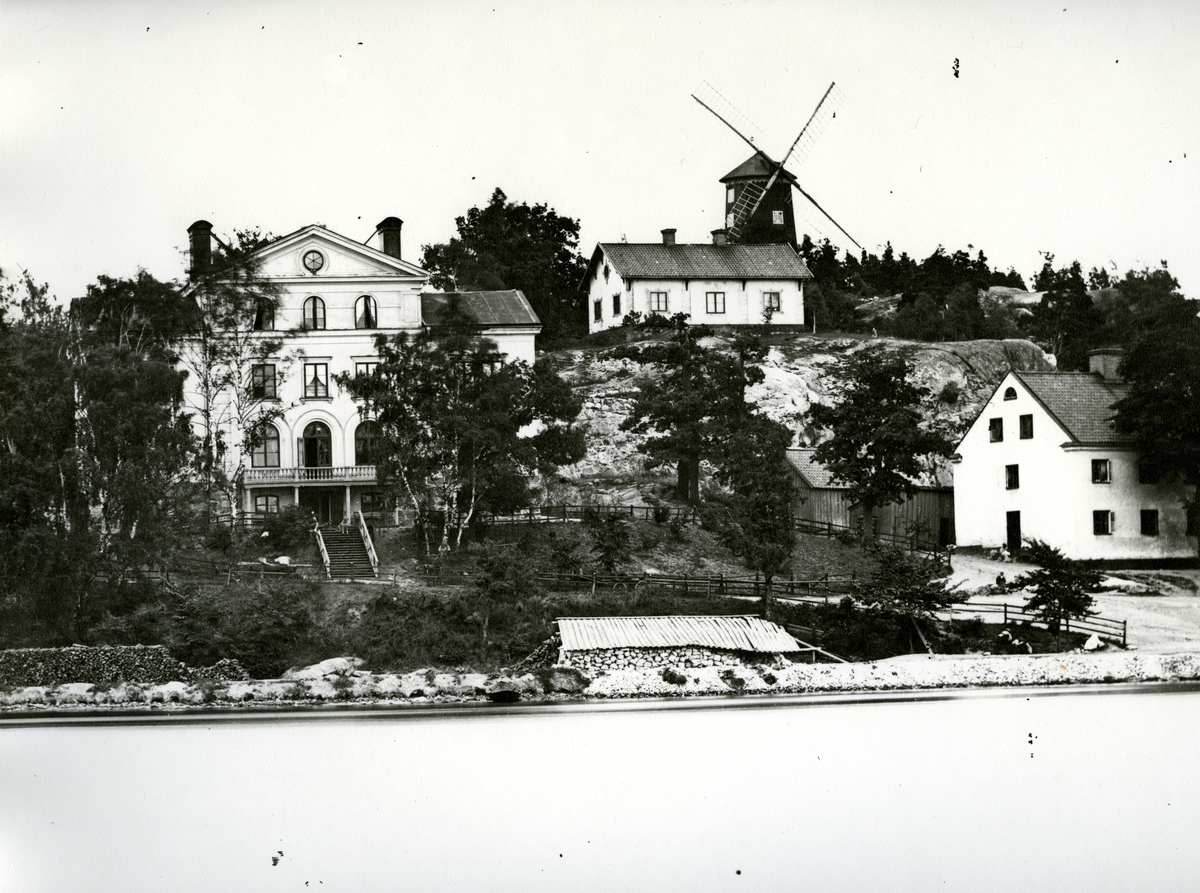 Värdshuset. I bakgrunden Kvarnberget med Väderkvarnen, Stjärnan och till höger skymtar Övre Stenhuset.