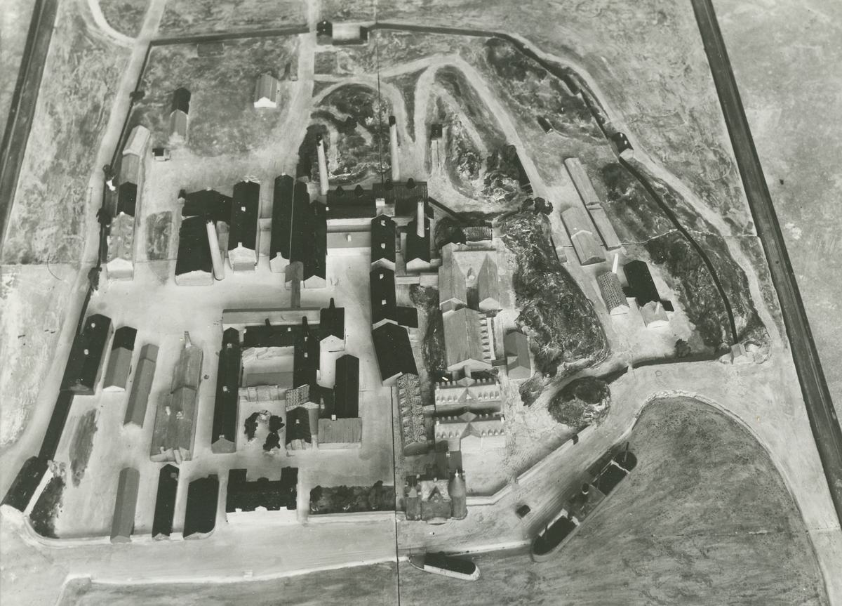 Titel: Exteriör. Modell över Gustavsbergs fabriksområde. Okänd upphovsman.