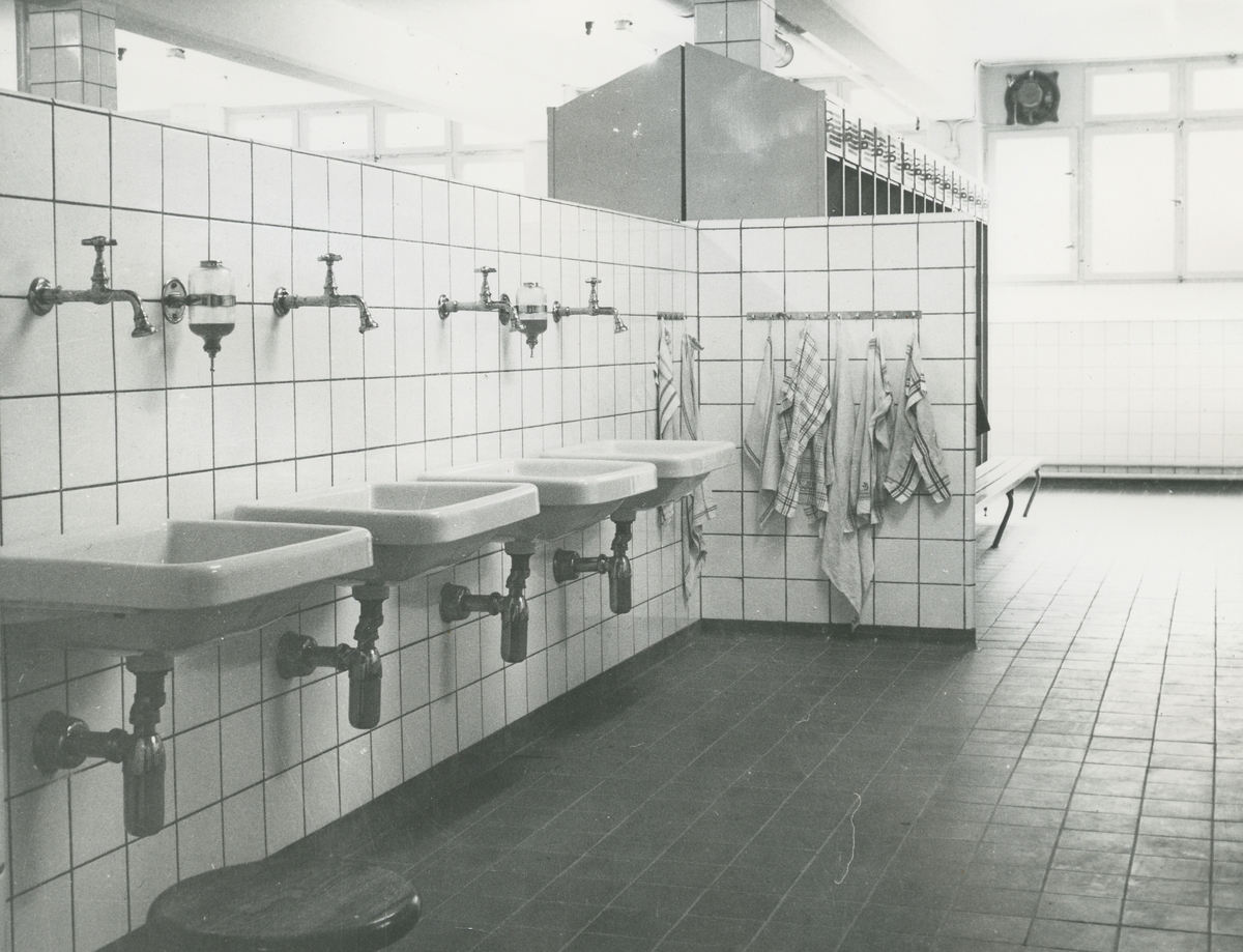 Titel: Interiör. Tvättrum, Hushållsporslinsfabriken.
