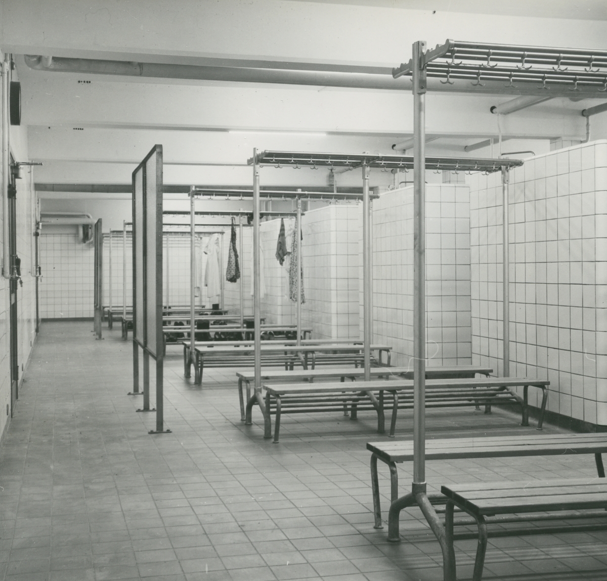 Titel: Interiör. Omklädningsrum, Hushållsporslinsfabriken.