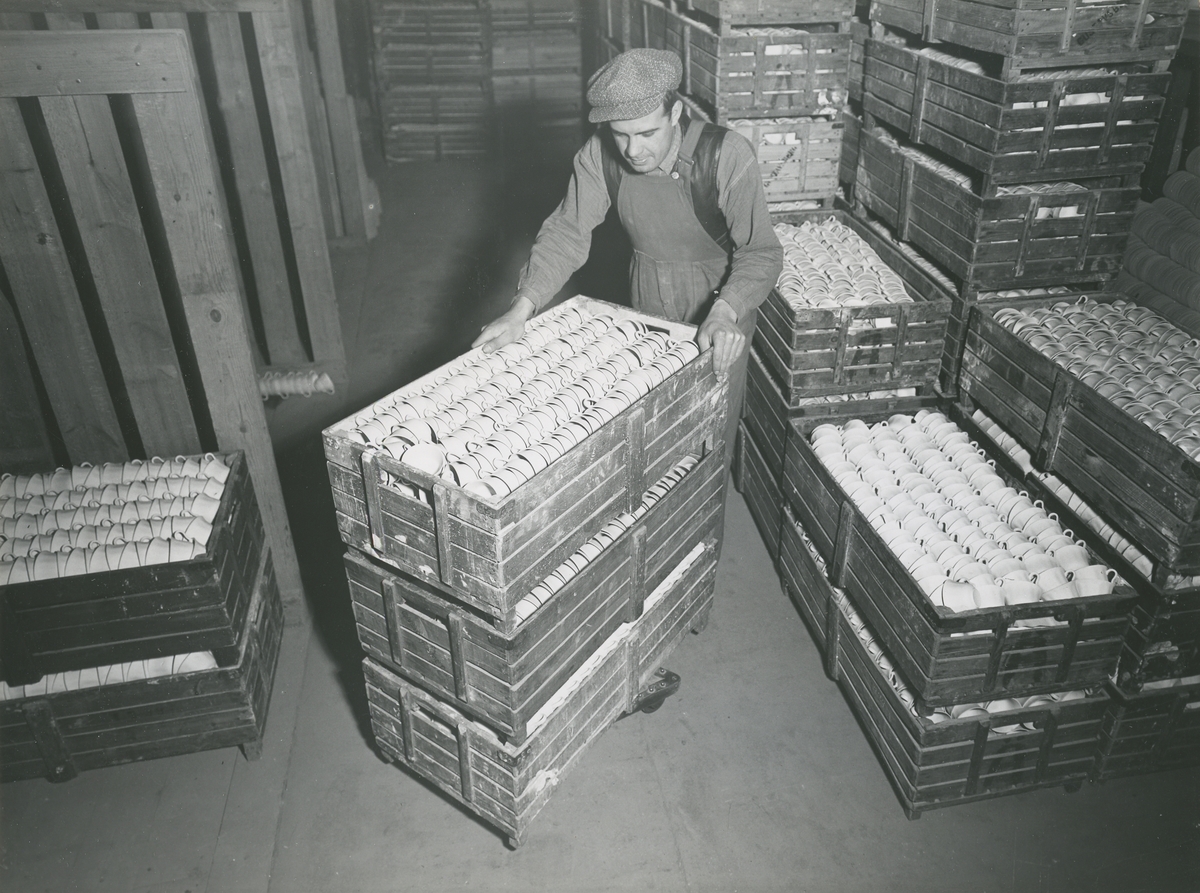 Titel: Interiör. Lastutrymme för lagring och packning av gods tillhörande Hushållsporslinsfabriken. Personer: okänd