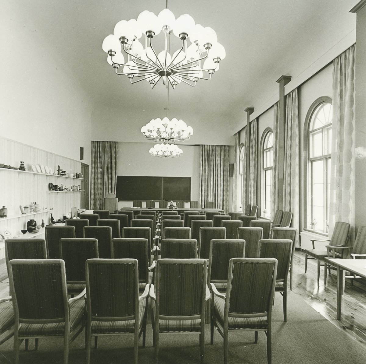 Titel: Interiör. Gamla kyrksalen, Gula byggningen. (Gula kontoret).