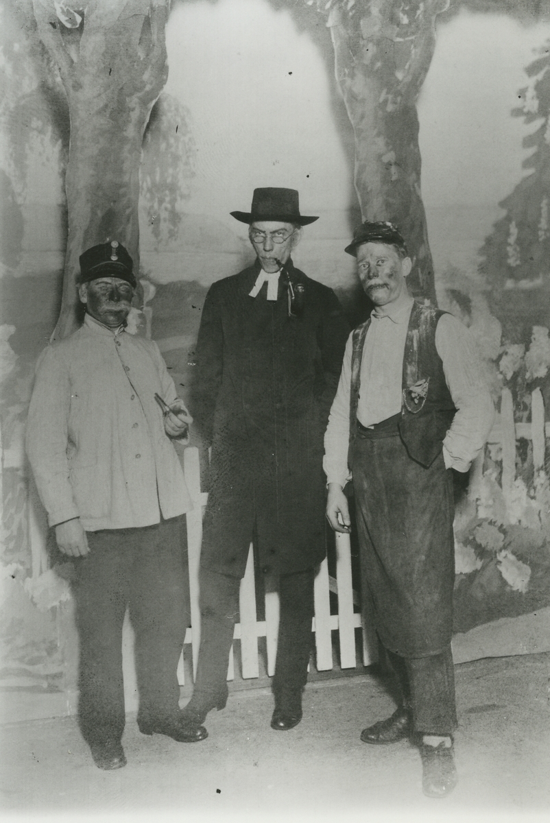 Titel: Skådespelare i pjäsen Majorens döttrar på Klubbhusets scen. Personer: Carl Pettersson, Gustav Lorang, Bengt Box