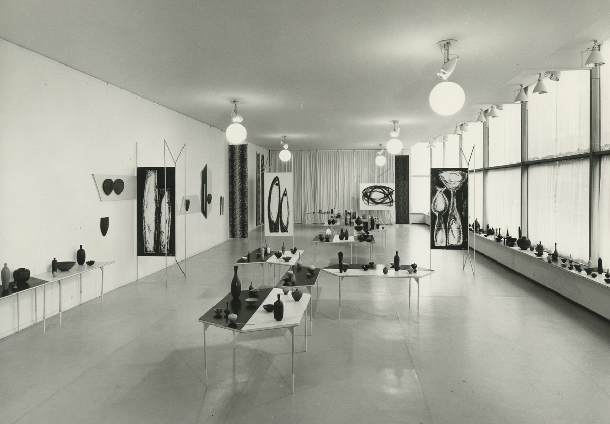 Interiör. Röhska museet, Göteborg. Utställning av stengods från Gustavsbergs Fabriker.
