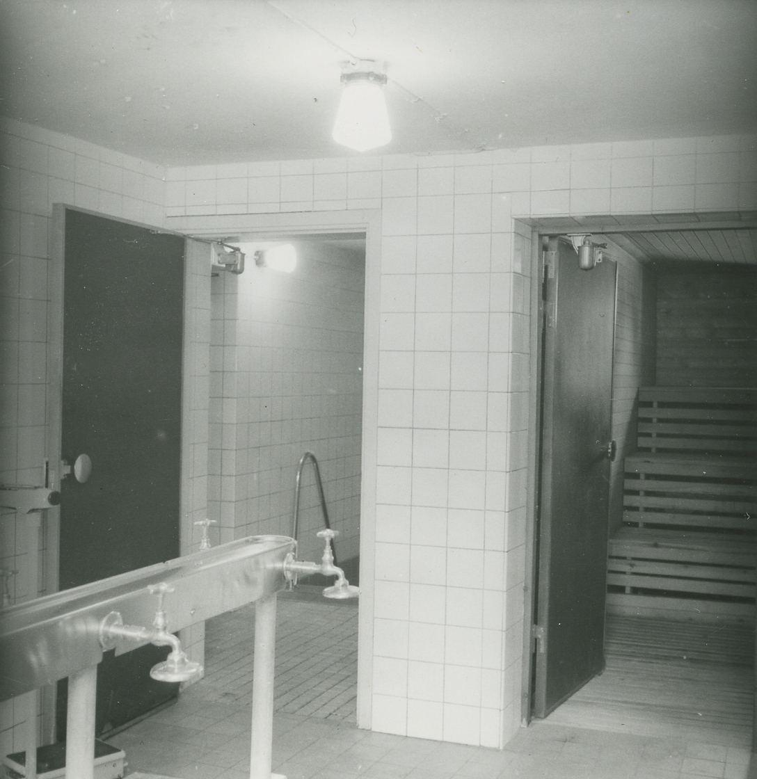 Interiör. Dusch/tvättrum, Hushållsporslinsfabriken.