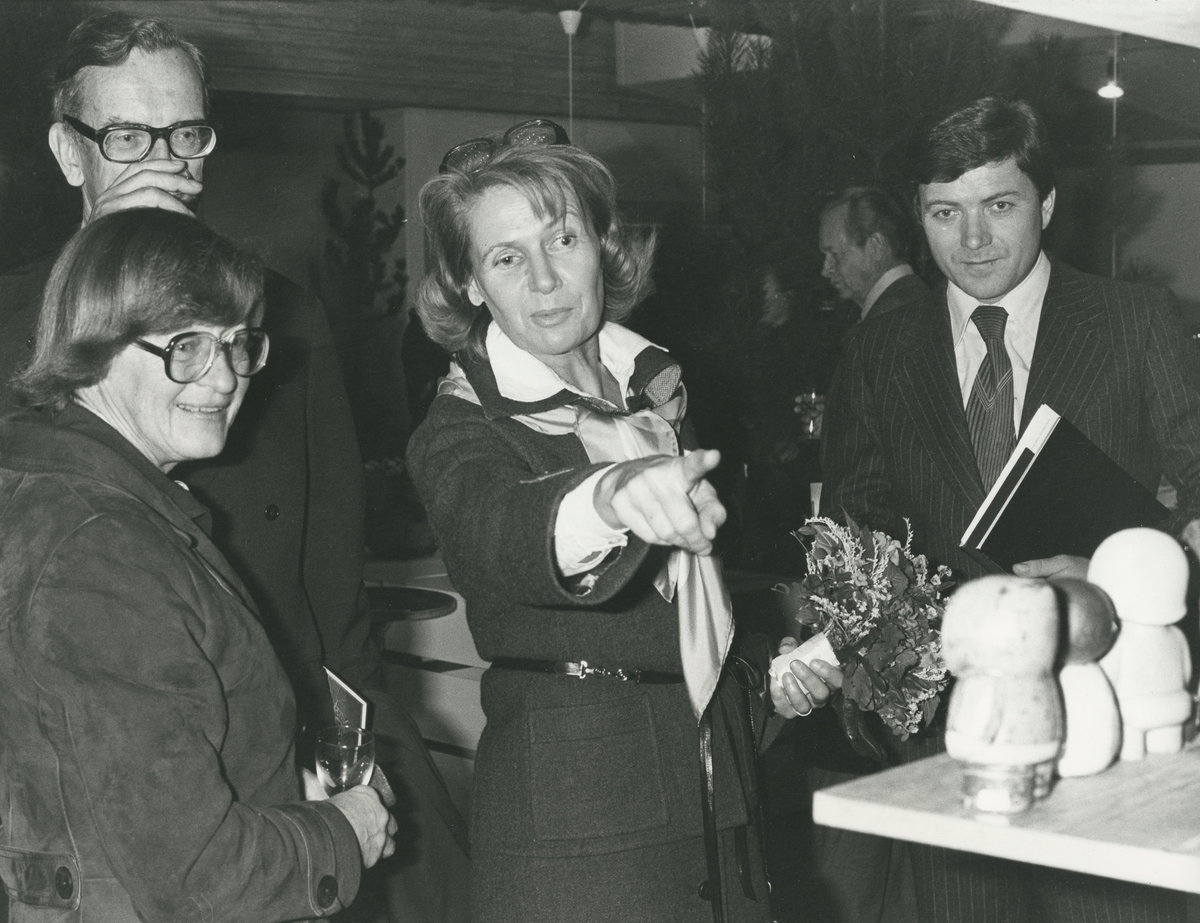 Personer: Ambassadörsfru Hagen i mitten, Ingemar Isakssson t.h. och Arthur Hald från Gustavsbergs Fabriker, t.v. okänd person