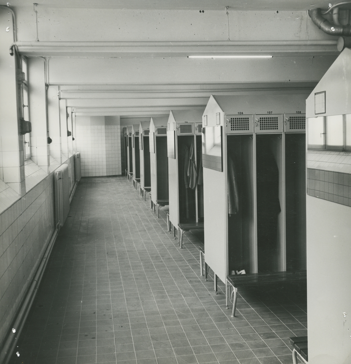 Titel: Interiör. Omklädningsrum, Hushållsporslinsfabriken.