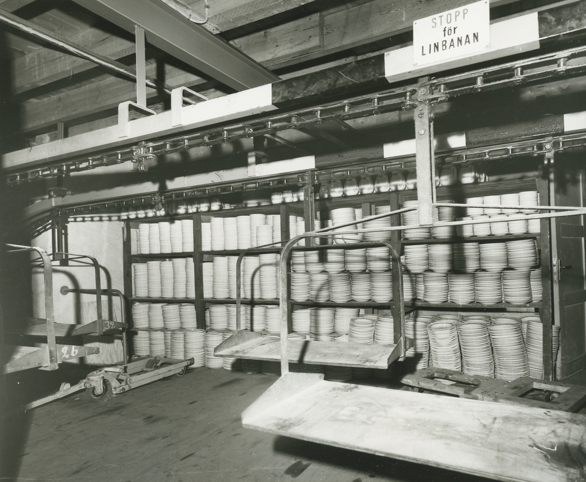 Interiör. Lastutrymme för lagring och packning av gods tillhörande Hushållsporslinsfabriken.